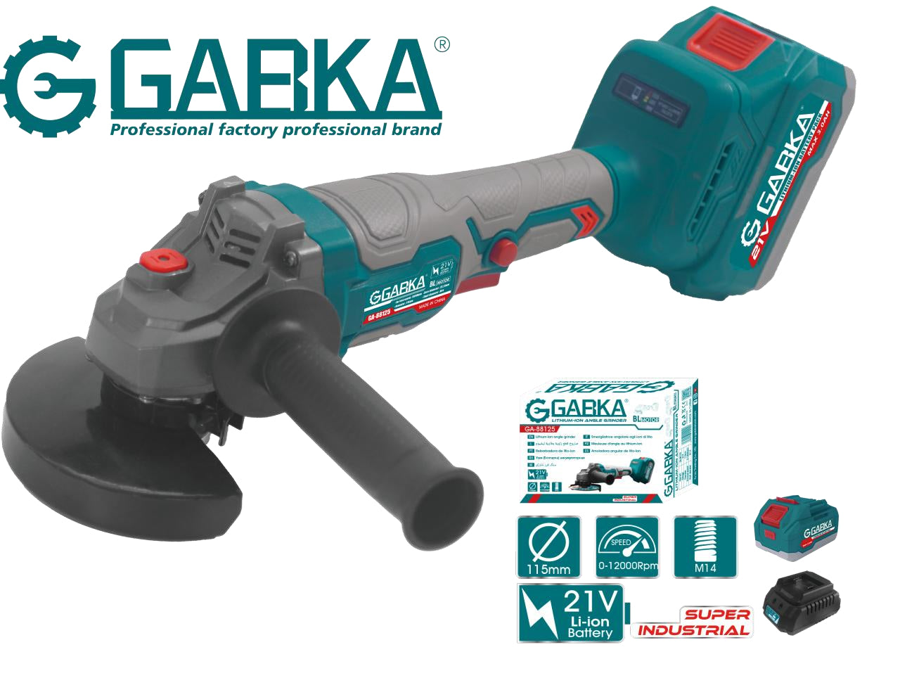 🔧 GABKA® Γωνιακός Τροχός Μπαταρίας 21V GA-88125A με 1 Μπαταρία & Φορτιστή
