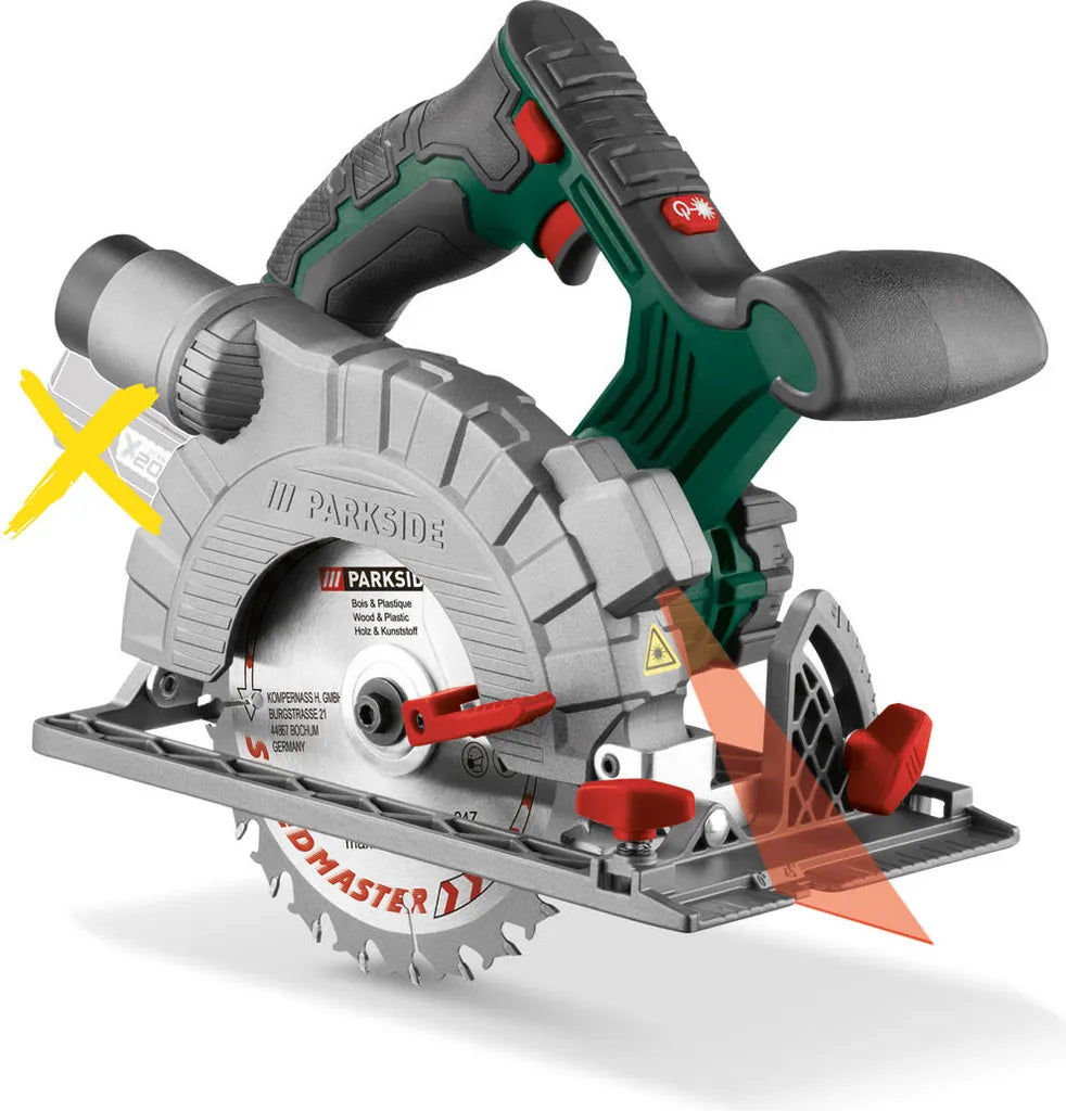 Акумулаторен циркуляр с лазерен лъч PARKSIDE 20 V »PHKSA 20 Li A2«, без батерия и зарядно устройство
